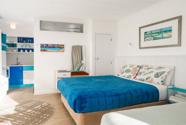 The PAUA Family Apartment 1 is a ground floor accessible apartment which sleeps up to 5, with one queen and 3 single beds. You have a full kitchen, separate bathroom, air conditioning TV with Netflix & free WIFI plus sea views and al fresco dining.