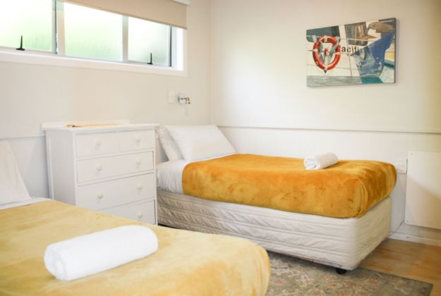 TUATUA Family Apartment 2 sleeps up to 5 with a queen bed and three singles.
